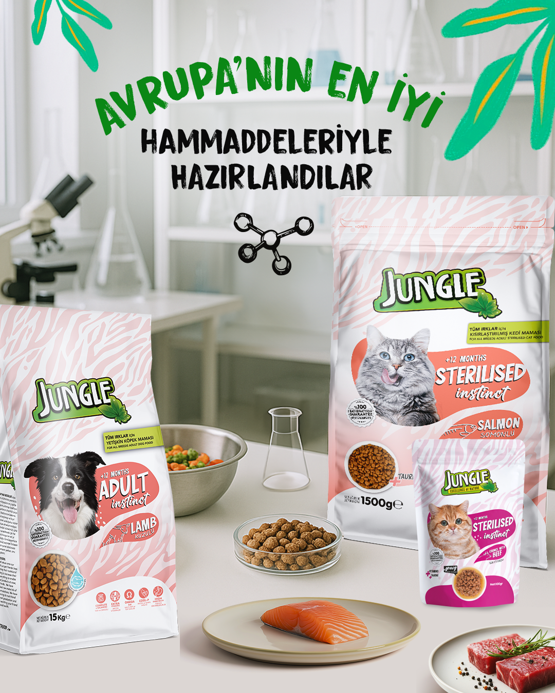 Avrupa’nın en iyi hammadde tedarikçileriyle çalışıyor, yalnızca güvenilir kaynaklardan elde edilen yüksek kaliteli et, balık, tahıl ve bitkisel bileşenleri kullanıyoruz.