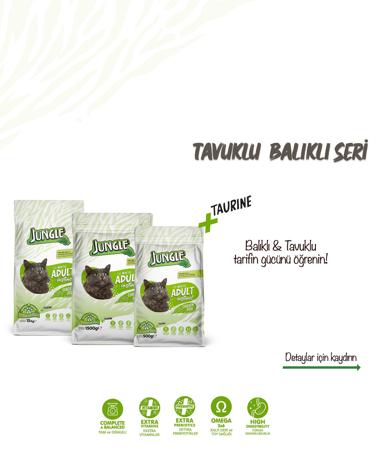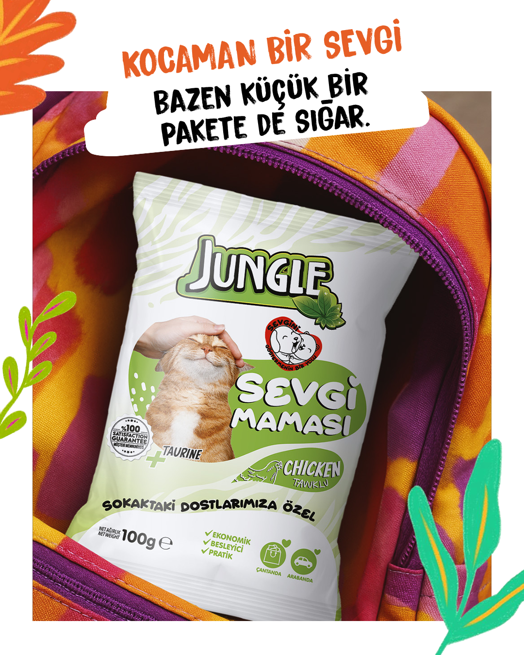 Sokaktaki dostlarınız için özel olarak üretilen sevgi maması ile onlara olan dostluğunuzu gösterecek, aynı zamanda ihtiyaçları olan besin değerlerini tam anlamıyla karşılayabileceği özel olarak formüle edilen Jungle sevgi maması ile onların hayatlarına dokunmuş olacaksınız. Küçük dokunuşlar ile büyük mutluluklar.