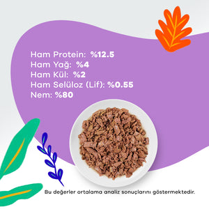 Mineral ve vitaminlerle zenginleştirilmiş, tavuk etli, tüm ırklardan yavru kediler için tam ve dengeli, sağlıklı gelişimlerini ve günlük aktiviteleri için gerekli enerjiyi destekleyen yaş mamadır.