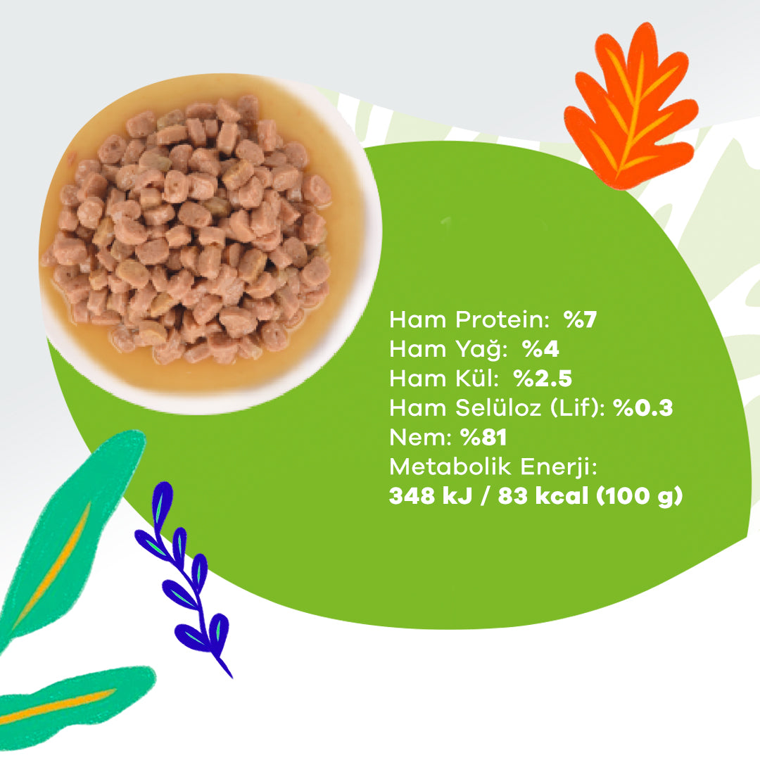 Tavuk içeriğine sahip, gravy (soslu) formda hazırlanmış, 1 yaş üzeri yetişkin kediler için tam ve dengeli beslenme sunan yaş mama.