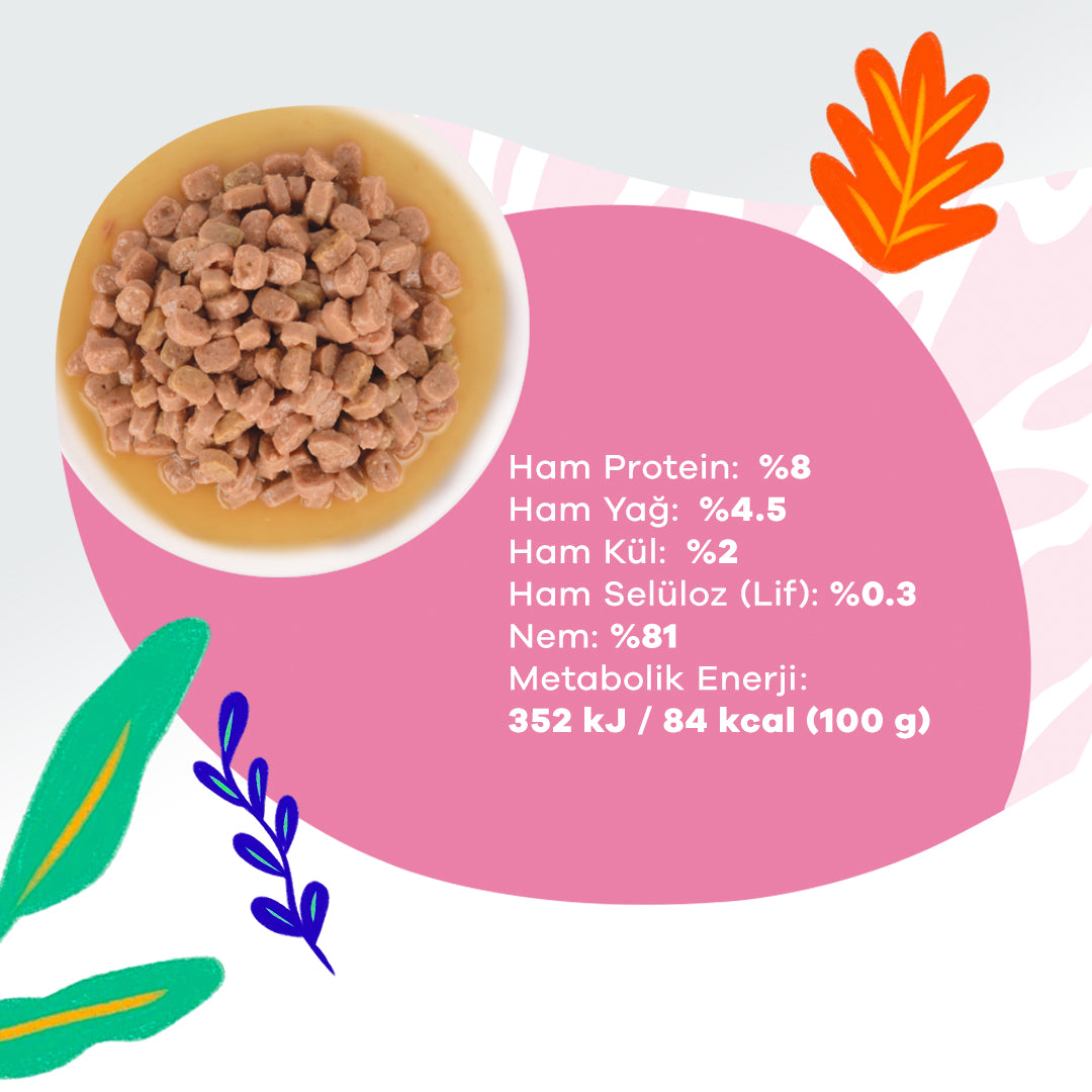 Tavuk etli gravy (soslu) formülüyle hazırlanmış, 1 yaşına kadar tüm yavru kediler için tam ve dengeli beslenme sağlayan yüksek lezzetli yaş mamadır.