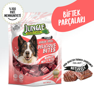 Gerçek dana ve tavuk etiyle hazırlanan Jungle Mermer Görünümlü Sığır Etli Köpek Ödül Maması, lezzetli aroması ve yüksek protein oranıyla köpeklerin damak zevkine hitap eden besleyici bir atıştırmalıktır.