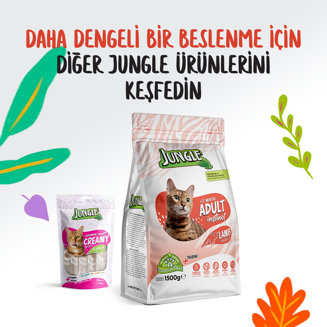 Lezzetli sığır eti parçalarıyla zenginleştirilmiş Jungle Sığır Etli Kedi Konservesi, yetişkin kediler için yüksek lezzet, kolay sindirim ve dengeli beslenme sunar.