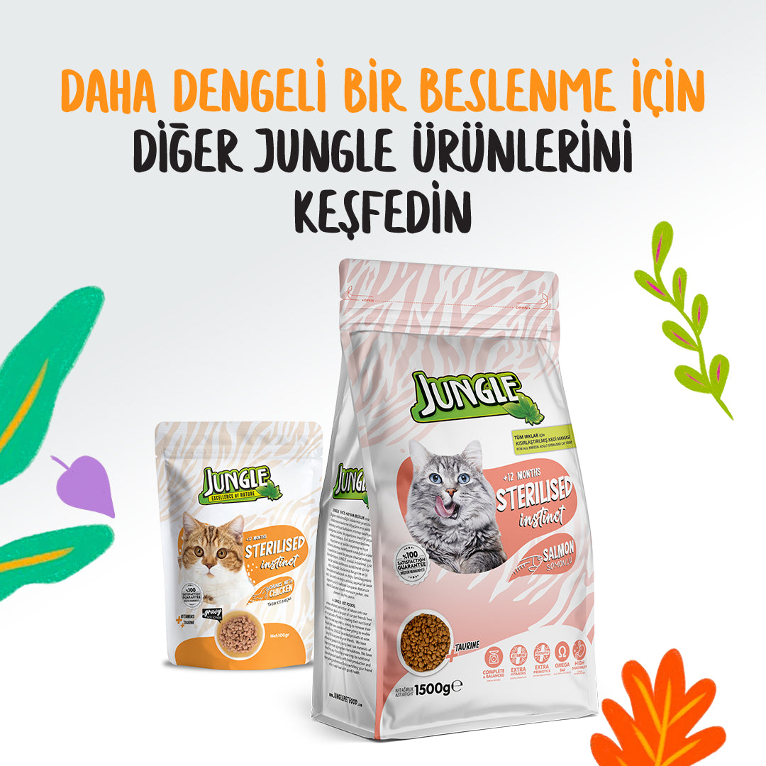 Kısırlaştırılmış kediler için özel olarak formüle edilen Jungle Tavuklu Pate Mama, yüksek protein içeriği, vitamin ve minerallerle zenginleştirilmiş formülüyle sağlıklı bir yaşamı destekler.