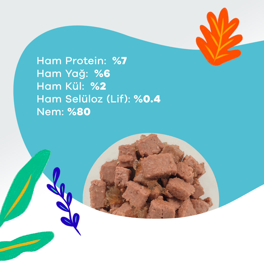 Kuzu eti içeren gravy (soslu) yapıda hazırlanmış, tüm ırklardan yavru köpekler için uygun, tam ve dengeli beslenme sunan yaş konserve mama.